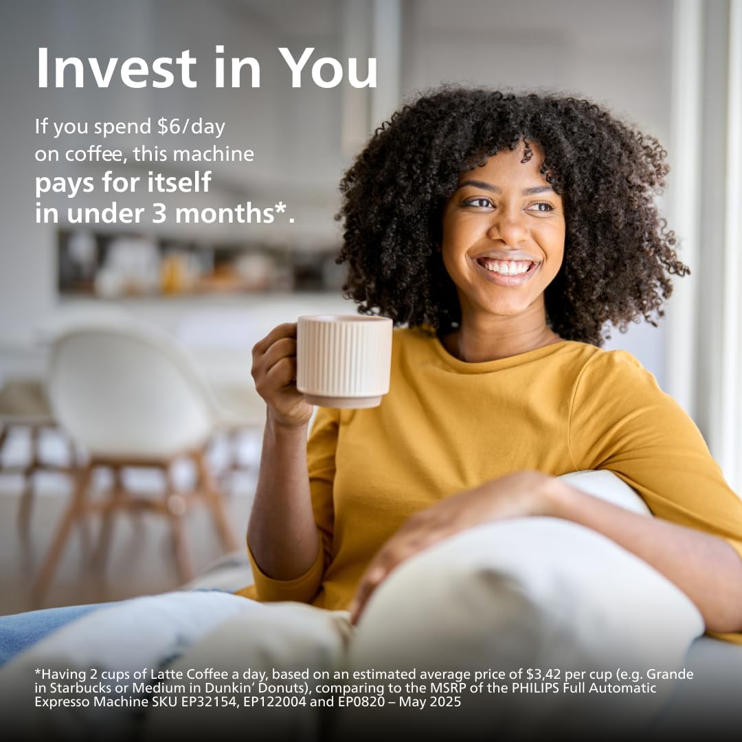- INVESTIEREN SIE IN SIE: Lieben Sie Kaffee in Café-Qualität? Bringen Sie es nach Hause mit der Nr. 1* Super Automatic Espressomaschine in Kanada und den USA kombiniert. * Überspringen Sie den täglichen 6-Dollar-Lauf im Café, Philips zahlt sich in etwa 6,5 Monaten aus.